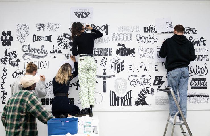 Cette phase de recherche et de création s’est concrétisée par la reproduction au marqueur des lettrages de nos étudiants sur un mur. Dans la bonne humeur et une ambiance musicale, toutes et tous se sont impliqués pour donner vie à cette composition façon “all-over” collective. Un beau projet qui a fait leur satisfaction !